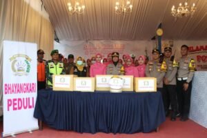 Dalam kesempatan tersebut, Bhayangkari Cabang Polres Mojokerto Kota turut menyalurkan bantuan berupa makanan dan obat-obatan kepada personel yang bertugas di pos-pos pengamanan dan pelayanan. Bantuan ini sebagai bentuk perhatian dan dukungan moril agar personel tetap sehat dan prima selama melaksanakan tugas.