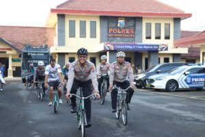 Kegiatan yang mengusung ajakan “Ayo Bersepeda” ini dimulai dari pukul 16.00 dengan start dan juga finish di Mako Polres Mojokerto Kota.